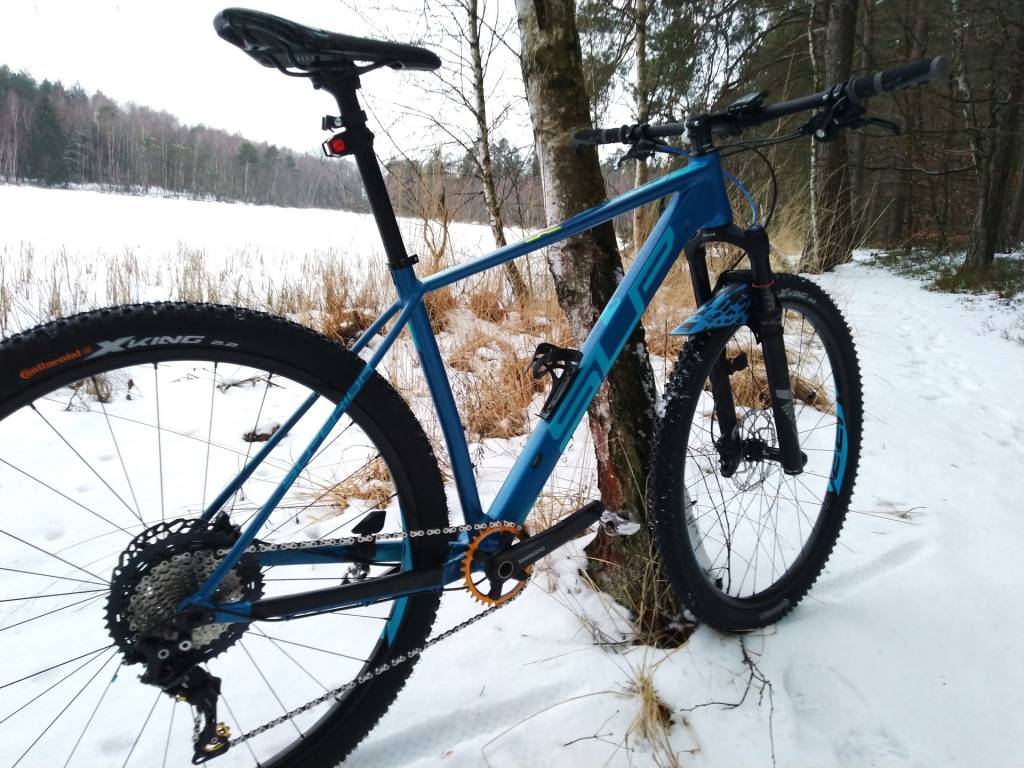 bartekostroda Opublikowano 2 Grudnia 2018 Autor Opublikowano 2 Grudnia 2018 Dziś przymiarka ważących 1,2 kg opon CST Rock Hawk 29x2,4. Idą po śniegu jak czołg. Tylne koło ledwo się mieści w ramie 😮 Tylko śniegu nie ma 😀