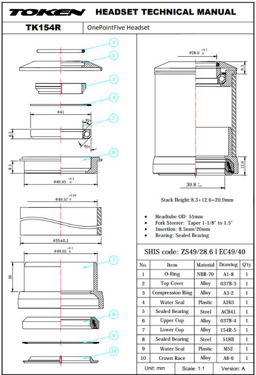 pchemski Opublikowano 4 Października 2020 Opublikowano 4 Października 2020 19 godzin temu, Fimala napisał: Dobra, dawno nic nie pisałem ciekawego, ale wrzucę coś aby było dla potomnych. Zdecydowałem się jednak na założenie karbonowego widła. Wybór padł na Carbonda CFO606: http://www.carbonda.com/accessory/fork-cx/90.html Cena to 139$ z przesyłką do Polski. Teraz ciekawsza część. Aby dokonać zmiany w podstawowej wersji Sequoi należy całkowicie zmienić stery. Żeby było zabawniej Spec użył dwóch różnych standardów wiec komplet sterów trzeba składać z dwóch różnych kompletów. Na górę idzie (to potwierdzone info) część sterów FSA No 11AGY (https://shop.fullspeedahead.com/en/headsets/road-mtb-urban-commuting/no-11agy). Szerokość główki ramy u góry to jakieś 46.8-46.9mm Dół główki według pomiaru ma 54.9mm. Bazując na rysunkach technicznych udostępnionych przez Tokena (BTW każdy producent powinien udostępniać tak szczegółowe rysunki, brawa dla Tokena) pasująca miska to EC49/40. Token podaje tolerancje dla wymiaru na poziomie +/- 0.1mm. Więc wszystko by się zgadzało Myślę, że na nowy sezon wideł już będzie siedział. Górna część sterów już do mnie jedzie. Resztę szpeju będę kompletować pewnie jakoś pod koniec miesiąca. Mistrzu miałem podobna rozkminke u siebie z sterami dlatego na dole mam fsa a na gorze riczego.... teraz bym się zastanowił nad czymś z creeka bo można dobrać Komplet poczytaj u nich na stronie: https://canecreek.com/product/forty/