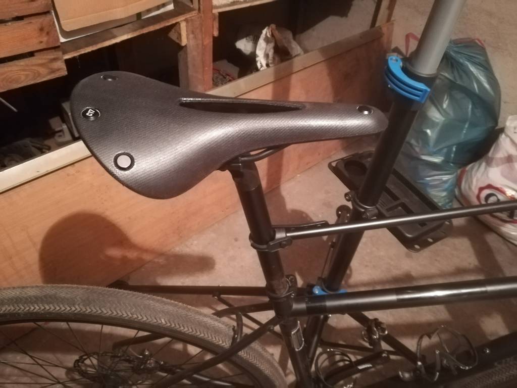 Fimala Opublikowano 27 Grudnia 2018 Autor Opublikowano 27 Grudnia 2018 Mały update. Grudzień upłyną pod kątem fatalnej pogody i praktycznie nie odbyłem żadnej jazdy. Przenoszę się na zajęcia spinningu. Co do roweru to w grudniu skupiłem się na serwisie i przymiarkach. Wymieniłem owijkę na Ritchey WCS Race Gel bar tape: Robiłem to pierwszy raz i na oko wyszło całkiem okej. Trochę spartoliłem wykończenie przy mostku, ale z każdą kolejną owijką powinno być lepiej. CO do owijki to sprawia wrażenie grubej i mięsistej. Zobaczymy jak będzie się sprawować. Kolejnym mod to siodełko. Miejsce Selle Italia Flite zajął Brooks C17 Cambium Carved All Weather: Koła okazały się być jednak fabrycznie przystosowane pod system bezdętkowy: W sobotę przyjedzie do mnie kompresor a w niedziele prawdopodobnie uda mi się dokończyć zabawę z kołami. Zwykła pompka warsztatowa SKS-a niestety nie dała rady W końcu po zakupie udało mi się dokładnie wyczyścić napęd oraz zrobiłem przymiarkę toreb bikepackingowych, które będę brać na Wisłe 1200: To na razie tyle jeżeli chodzi o grudzień. Znacie może kogoś kto byłby w stanie wykonać adapter pod koszyk bidonu dzięki któremu mógłbym opuścić go o kilka cm w dół?