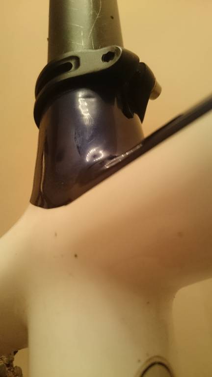 novszy Opublikowano 11 Marca 2018 Opublikowano 11 Marca 2018 (edytowane) Zastanawiam się nad tym czy moja rama po prostu nie jest uszkodzona, bo mnie tak to wygląda. Konsultowałem to swego czasu z kilkoma osobami, według których uszkodzony karbon to pęknięcie na dwie części. Ale czy aby na pewno? Czy zawsze karbon od razu łamie się na dwie części? Po takich opiniach zacząłem doszukiwać się problemu w obejmie i sztycy, ale chyba zupełnie nie potrzebnie. Wrzucam kilka zdjęć. Na pierwszym widać wgniotkę pod obejmą, którą widziałem już na samym początku, kiedy zakupiłem rower. Czy nie jest to jakaś wada fabryczna, osłabienie materiału w tym miejscu, co powoduje sprężynowanie sztycy i obejmy, przez co słychać taki przerażający trzask? Na drugim zdjęciu widać coś czego wcześniej nie widziałem, jakby pękająca powłoka lakieru. Na trzecim, coś co też pamiętam odkąd sięgam pamięcią, nierówna powierzchnia i rysa, jakby rozwarstwienie karbonu. Zdejmę zacisk, wyczyszczę wszystko dokładnie i wykonam jeszcze zdjęcia przy dobrym oświetleniu, coby lepiej było to widoczne. Edytowane 11 Marca 2018 przez novszy
