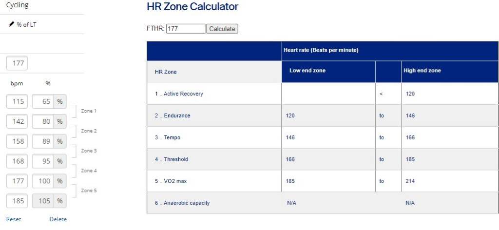 lopez Opublikowano 15 Lutego 2021 Autor Opublikowano 15 Lutego 2021 (edytowane) Test FTP taki jak u szaja na YT robiłem, i podobny chyba też jest na zwift: 10 minut rozgrzewki 3x po minucie wysokiej kadencji z minutą przerwy 5 minut odpoczynku 5 minut pod max 5 minut odpoczynku 20 min max Ok czyli wychodzi na to, że 530 ma jakiś dziwny kalkulator do LTHR, bo między 165 a 177 różnica jest spora. Tak więc między kalkulatorem british cycling a garminem widać następujące różnice: I bądź tu mądry, aczkolwiek te wartości z 530 po lewej stronie, są już podobne do Twoich, więc pewnie już jest poprawa jeśli chodzi o ustawienia. Edytowane 15 Lutego 2021 przez lopez