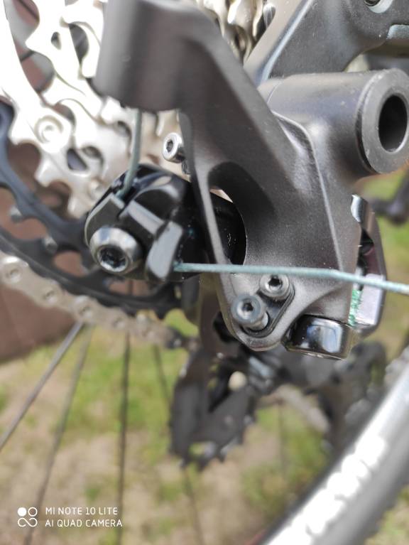 clip7 Opublikowano 10 Kwietnia 2021 Autor Opublikowano 10 Kwietnia 2021 Może zacznę od początku. Rower GC 7.9 AL SLX 29", sztywna oś tył 12x142 DT Swiss 350 SP. Wcześniej miałem bębenek 11 rzędowy i wymieniłem na Micro Spline 12 rzędowy. Jeździłem na napędzie Shimano M8000 2x11 z kasetą 11-46. Teraz montuję Shimano M8100 1x12 z kasetą 10-51. I tu pytanie na wstępie: czy muszę wymienić hak przerzutki? Ten ma jakieś oznaczenie #39. Zamontowałem przerzutkę tak jak w instrukcji czyli tak, żeby płytka blokująca stykała się z ogranicznikiem haka przerzutki bez żadnego odstępu. Potem regulacja wysokiego przełożenia. Zmontowałem łańcuch, wszystko zgodnie ze sztuką (4-5 ogniw więcej) potem linka i pancerz. I jadę manetką w górę. Gdzieś przy 10-11 biegu przerzutka zaczęła trzeć o zębatkę kasety i stąd te przetarcia na przerzutce. Wkręciłem śrubę regulacji odległości górnego kółka od kasety do końca i mimo to wciąż było za mało. Więc odkręciłem przerzutkę i odsunąłem płytkę blokującą od ogranicznika haka o jakiś kawałek. Teraz przerzutka jest niżej i nie trze o największe tryby kasety. Jednak po pierwsze: z tyłu przerzutki jest łuk z dwoma znacznikami, do których ustawia się pozycję przerzutki do największej zębatki kasety. Na filmach widzę, że ten łuk powinien być jakby styczny do okręgu największej zębatki a u mnie jest mocno przechylony. Regulacja śruby powoduje tylko przesunięcie tego przechylenia w górę i w dół a nie zmianę kąta. Po drugie: w tej pozycji działało do 11 biegu. 12 po prostu nie chciał wejść gdyż ramię cięgna przerzutki opierało się już o jej korpus (tu wnioskuję, że to nie może być wina ani haka, ani niczego innego - może się mylę). Zacząłem trochę kombinować i delikatnie dociskać przerzutkę. Teraz na manetce zaczyna jakby wstrzeliwać ostatni bieg ale nie jest to jakby pełne wstrzelenie. Łańcuch na chwilę wpada i znów spada z największej zębatki. Cały czas widzę, że ramię cięgna opiera się o korpus i dlatego górne kółko przerzutki nie może prawidłowo ustawić się pod największą zębatką. O co chodzi? Czy trzeba rzeczywiście wymienić hak, na jaki? Proszę o pomoc. Chyba rzeczywiście potrzebuję haka, który jest bardziej pionowo: Derailleur Hanger No. 38 | CANYON PL
