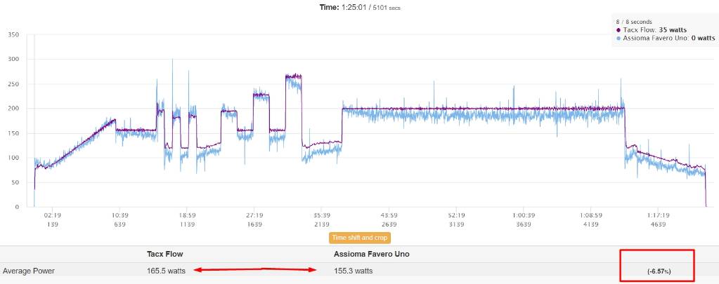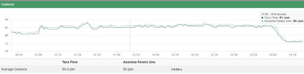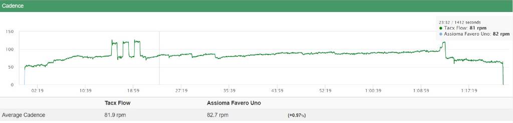 Lexluthor Opublikowano 20 Czerwca 2021 Opublikowano 20 Czerwca 2021 (edytowane) Favero Assioma Uno vs Tacx Flow [ERG - ON] Pomiar kadencji dla obydwu urządzeń odbywał się z korby. Pomiary Favero Assioma Uno zbierał Wahoo Bolt a Tacxa Zwift. Następnym razem wykonam także na wyłączonym ERG. Będę też mieć możliwość wykonać porównanie z DiretoX w późniejszym czasie. Pierwsze trzy słupki na przy kadnecjii 115-120, następne w okolicy 80 rpm, a bazowe ćwiczenie 85-90 rpm, i ostatnie 2 min tego ćwiczenia 100-120 rpm. Później rozjazd. Im wyższa kadencja tym bardziej zbliżone pomiary, a także im wyższe obciążenie obserwujemy identyczną sytuację, gdzie przy maksach Favero potrafi się wybić ponad Taxa. Jednakże od tej reguły odbiega 6 słupek gdzie Favero zbiera z czasem niższe pomiary. Przyglądałem się kadencji w tym bloku, i jest identyczna, praktycznie stała, różnica wychodzi 1 rpm, a sama kadencja wacha się 85-87. Różnica w średnich być może wychodzić z tego że jednak brakuje tej prawej nogi, a pomiar w Tacx Flow jest centralny z koła. {edit} nadpisuję obrazek kadencji dla pełnego czasu. Edytowane 20 Czerwca 2021 przez Lexluthor