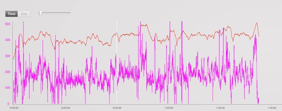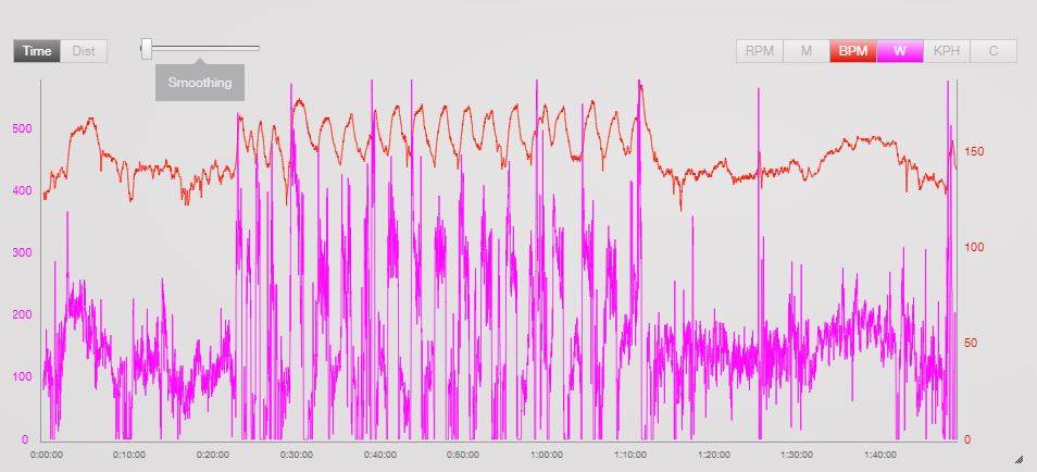 Lexluthor Opublikowano 13 Czerwca 2021 Opublikowano 13 Czerwca 2021 (edytowane) Te skoki do 500W są dość dziwne, tylko na wykresie są w ujęciu makro. Spróbuj zawęzić wykres jednego z tych skoków do ujęcia mikro ( powiększ ten moment czasowy tego skoku mocy na wykresie ), i porównaj czy on następuje po zerowej kadencji, kiedy przestajesz kręcić korba wytracasz prędkość a kiedy zaczynasz kręcić wtedy przeważnie następuje chwilowy skok mocy. To jest dzisiejsza moja jazda na trenażu, moc z Assiomy Uno. W tygodniu zrobię jazdę na zewnątrz to też zobaczysz jak to u mnie wygląda. Możemy zrobić tak, jeżeli masz Zwifta zrobię krótki testowy workout ok. 30min Ustawie kilka serii bloków 1-2 min. Udostępnię go jutro i wrzucisz sobie to Zwifta i wykonasz na sensorze Assioma Uno, wynik podepnij tutaj, potem wrzucę mój i twój do Zwift Power Analysis i zobaczymy jaki wynik da na wykresie. Co Ty na to? np. rozgrzewka 10min z1 (150W)- 2min, cad 85 z1 (150W)- 2min, cad 120 z0 (100w) - 3min cad free z2 (200W) - 2min, cad 85 z2 (200W) - 2min, cad 100 z0 (100W)- 3min, cad free z3 (240W) - 2 min cad 65 z3 (240W) - 2min cad 85 Edytowane 13 Czerwca 2021 przez Lexluthor