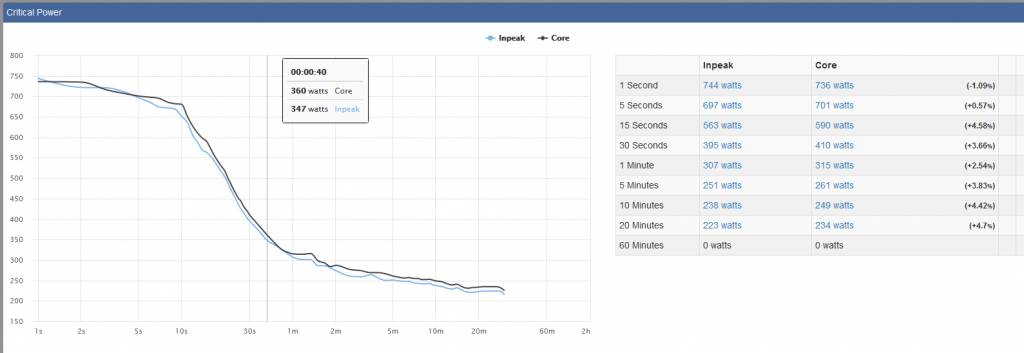 Homeras Opublikowano 3 Lipca 2020 Opublikowano 3 Lipca 2020 W dniu 25.06.2020 o 12:09, Zigfir napisał: Nowy firmware do core chyba nic specjalnie tu nie wniósł. Jeszcze przed wysyłką miernika zaktualizowałem trenażer i zrobiłem sobie eksperyment z włączonym chwilami ERG: https://www.zwiftpower.com/analysis.php?set_id=42648 Przy okazji próby sprawdzenia, czy uda mi się utrzymać wymuszone na trenażerze 1200 W przez 6 sekund. Tu dopiero pomiary się rozjechały. 51% różnicy. Przy rozdzielczości 1 sekundy to czas interwału 6 s to zdecydowanie za mało do naukowych eksperymentów. Trzeba by taką moc stabilnie, przy określonej kadencji i to najlepiej wyższej utrzymać dłużej, ale do tego inny silnik by się przydał, bo tak po prawdzie to ja bym przy takim oporze dłużej nie uciągnął 😎. Dla całego treningu wyszło 9,6% różnicy. Odnośnie ERG mode i Zwift vs Inpeak to zawsze będzie duża różnica w pomiarze. Zwift automatycznie ustawia opór do zadanego a Inpeak łapie skoki z jaką siłą naciskasz na pedała. Najbardziej sensowny porównaniem jest jazda dowolna bez erg i zrobienie kilku sprintów i jazda ciagłych z dana mocą lub przejechać sobie wyścig na zwifcie. Ja sam osobiście posiadam też trenażer Wahoo Core i pomiar w lewym ramieniu korby Inpeak i wyniki powyżej 1 minuty wychodzą bardzo podobnie, gorzej ze sprintami i mocnym przyspieszeniami. Tutaj ewidentnie Inpeak pokazuje wiecej. Załaczam link do mojego zwift powera i do jednego wyścigu na zwifcie gdzie widać różnice w pomiarze przy sprincie a powyżej 1 mni jest już bardzo zbliżone. https://www.zwiftpower.com/analysis.php?set_id=19633