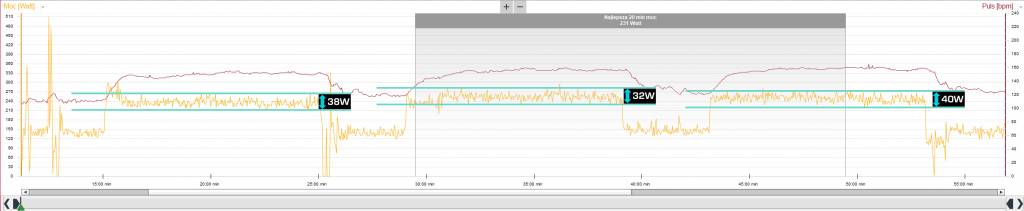 tazi_90 Opublikowano 10 Stycznia 2020 Opublikowano 10 Stycznia 2020 Dzisiaj zaliczyłem drugi dopiero trening z pomiarem mocy Stage. Stworzyłem poniższą grafikę, która obrazuje 3 środkowe interwały z treningu i zaznaczyłem różnice w jakich wacha się pomiar. Wiem, że to normalne, że to tak "skacze" i wcale się tym nie niepokoje, że coś jest nie tak, zastanawiam się tylko czy da się dopracować technikę pedałowania tak, aby te różnice były jeszcze mniejsze? Jak to u was wygląda?