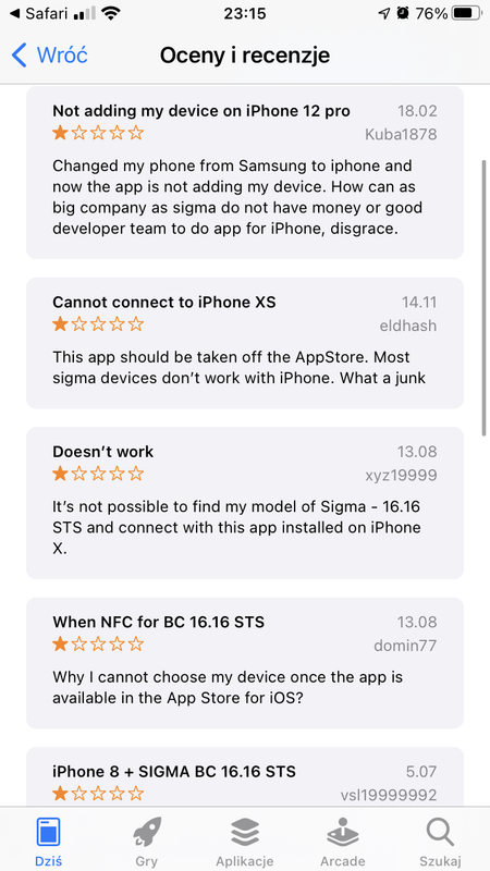 Dex Opublikowano 20 Marca 2021 Opublikowano 20 Marca 2021 (edytowane) 8 godzin temu, Redpill napisał: Tak, licznik glownie dziala na bazie sync. z NFC. do telefonu. Warunkiem jest tylko to zeby po kazdej zakonczonej trasie zrestowac ja.(tak jakby gps wiedzial ze zakonczyles calkowicie).i dopiero wtedy sync z telefonem. ( bez obaw wszystko zsumuje sie w totalach z tego co widze.) .Co do wyboru licznikow - zrob swoj wlasny research i zdecyduj sie na cos sam. Pozdro. Dzięki za szybką odpowiedź. Właśnie pokopałem trochę i chyba wybór padnie jednak na Bryton Rider 15, w Decathlonie. Ma wszystko czego mi trzeba, a jest niewiele droższy od Sigmy Pure GPS. EDIT: Co do NFC z iOSem, to jednak Sigma ssie ;). https://i.postimg.cc/fbqN68QW/13678-AA0-6-A95-49-AC-8112-6-CADFE406031.png Edytowane 20 Marca 2021 przez Dex