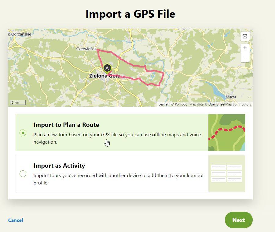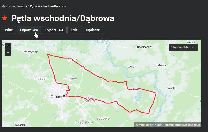Eddek Opublikowano 3 Września 2020 Opublikowano 3 Września 2020 Izi. W Stravie wchodzisz w swoją trasę (My Routes) i eksportujesz jako GPX: W Komoot importujesz plik GPS: Wybierasz plik, który wyeksportowałeś ze Stravy i importujesz jako planned route: W następnym określasz jako jaki typ planu to jest (rower, bieganie itp) i gotowe.