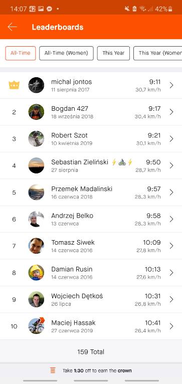 eathan Opublikowano 1 Czerwca 2020 Opublikowano 1 Czerwca 2020 17 minut temu, Łukasz_P napisał: Jestem w kilku Top 10 i mam kilka koron, a nie przekroczyłem nigdy 90 km/h, więc się nie zgadzam. Potwierdzam. Mam kilka 👑 na trasach mtb i wystarczyło ~40 km/h. Do top 10 również dałem radę bez 90 km/h
