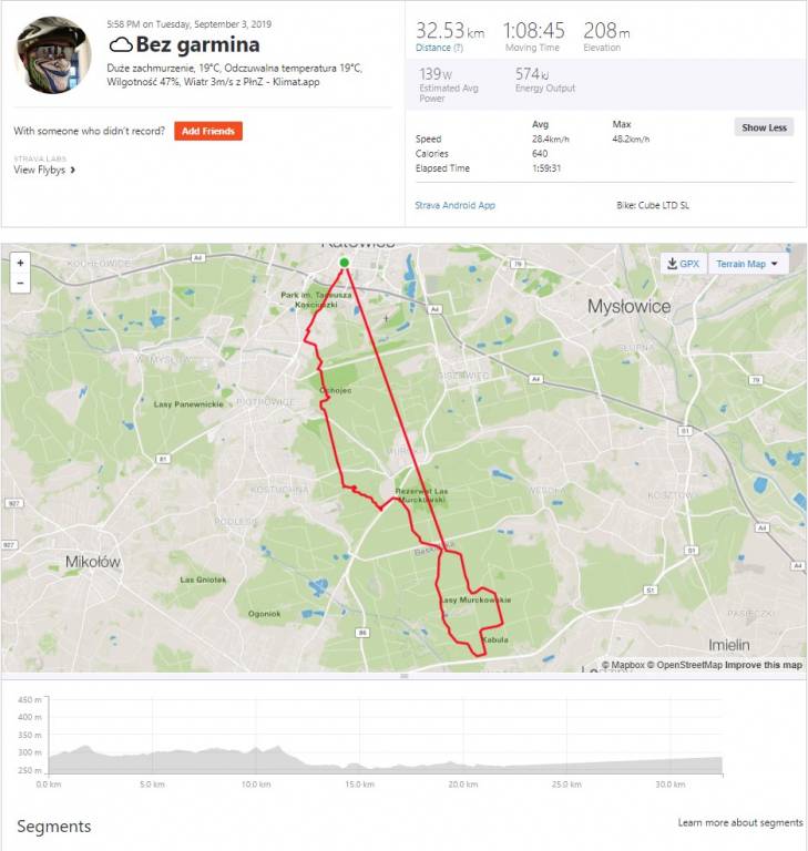 eathan Opublikowano 4 Września 2019 Opublikowano 4 Września 2019 Mój ukochany garmin trafił do serwisu. Wczoraj miałem pierwszą jazdę bez garmina. Aktywność rejestrowałem bezpośrednio na stravie na smartfonie. Od wieków tego tego nie robiłem. Dodałem do wyjątków baterii i ruszyłem. Niestety coś poszło nie tak. Brak części aktywności (ok 30 minut). Brak części trasy (to ta prosta kreska). Siłą rzeczy średnia z czapy. Ktoś z Was mi podpowie jak się przed tym zabezpieczyć? PS Orientuje się ktoś ile trwa (średnio) serwis w Garminie?