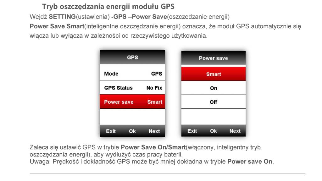pecio Opublikowano 2 Lutego 2019 Opublikowano 2 Lutego 2019 (edytowane) Masz tylko tryby pracy GPS i w zasadzie związane z tym oszczędności na baterii. Ten Power Save dasz na OFF i masz wyłączony GPS załącza się tylko przy odpaleniu nawigacji, ON jest non stop , Smart to takie połączenie tych dwóch powyższych jak nie potrzeba na postoju to się wyłączy jak ruszysz łapie fixa. Z GPS w trybie Smart oraz 20% podświetleniem około 11-12 godzin. Nie ma żadnej różnicy w zapisie śladu czy to Smart ,ON czy też OFF. Edytowane 2 Lutego 2019 przez pecio
