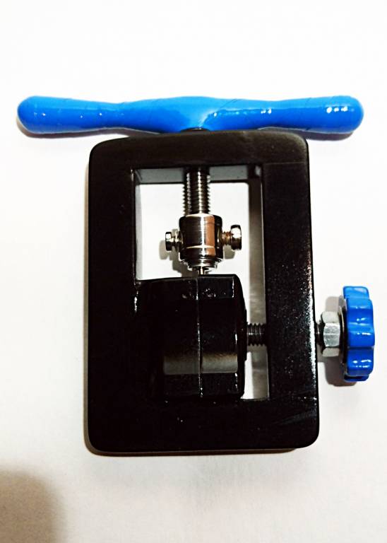 Kruk Opublikowano 15 Sierpnia 2019 Opublikowano 15 Sierpnia 2019 Witam i odświeżam, mam nowe narzędzie stworzone prostymi narzędziami. Może zacznę od końca tym razem. Wszystkie pytania typu: Po co to robiłeś? Tyle roboty a można to ręcznie zrobić? I tak dalej o razu uprzedzę: - lubię dłubać, coś zawsze kręcę, jeśli potrafię to wolę nie kupować czegoś na siłę. A teraz konkrety. Jakiś czas temu wpadłem na pomysł zrobienia praski do oliwki do przewodów hydraulicznych. Niby plan prosty, ramka, jakaś śruba zakończona szpikulcem i dwie szczęki do przytrzymania przewodu. Ale nie było to tak oczywiste. Wpierw wziąłem się za "śrubę" z pinem. Myślałem aby wykorzystać stary wyciskacz do łańcucha i tak zrobiłem, lecz tak pomyślałem logicznie że skoro będzie się obracać i wciskać oliwkę to końcówka pinu będzie lekko rzeźbić w trzpieniu oliwki. Wymyśliłem że musi być on stabilny ale obrotowy, aby nic nie tarło. Ze starych dysków twardych wykręciłem mikro łożyska maszynowe, na których obracał się talerze dysku. Też z tego od razu wyciągnąłem korpus do tych łożysk. W łożyska wprasowałem śrubkę mosiężną odpowiednio oszlifowaną. Następnie nagwintowałem gwintownikiem M6 aby pasowało do wyciskacza. Końcówkę pinu zrobiłem na łożysku maszynowych wraz z pinem z mosiądzu. Rączkę ze skuwacza starego okleiłem niebieską folią termoaktywną. Następnym etapem było znalezienie odpowiedniego materiały na ramkę do praski. Wpierw myślałem o kawałku jakiegoś plastiku twardego, później tekstolitu jednak skończyło się na stali. Szukałem jakiegoś pręta twardego, pełnego w środku i najlepiej o przekroju kwadratu. Po poszukiwaniach znalazłem stary śledź od namiotu cyrkowego. Stary, pożarty od rdzy ale widziałem w nim potencjał. Po 2 dniach szlifowania pilnikami wyprowadziłem go do przekroju kwadratu, pociąłem na części, nawierciłem i nagwintowałem otwory, skręciłem ramkę. Potem wymierzyłem otwory na ramie z pinem do wciskania końcówki oliwki, kolejno otwór na pokrętło do zaciskania przewodu. Oszlifowałem gotową ramkę na papierach wodnych. Wszystko wymalowane 2 razy czarnym lakierem i 1 raz clearem. Kolejno zabrałem się za zaciski przewodu. Tutaj długo nie myślałem i wykorzystałem standardowe Shimanowskie bloczki. Po prostu jeden przykleiłem do ramy w odpowiednio wymierzonym miejscu, zaś drugi musiał działać jak imadło. W tan sam sposób jak z pinem, postanowiłem wypełnić klejem bloczek, następnie wyfrezowałem otwór na łożysko z kolejnego starego dysku twardego ( takie 10GB mają takie łożyska ). Trzeba było zrobić pokrętło które będzie z tym bloczkiem. Stara śruba, końcówka z starego uchwytu na telefon, wszystko sklejone klejem, oszlifowane na równo i oklejone niebieską folią termoaktywną. Wszystko czas było złożyć i ewentualnie do kalibrować. Wszystko działa bardzo dobrze, odchylenie jest 0,3mm na pinie względem osi obrotu także jak przy tylko ręcznej obróbce nie jest źle Tydzień grzebania, szlifowania, dostrajania, polerowania i ogólnie zabawy, a efekt? Oceńcie sami 1.Bloczki Shimano do przycinania przewodu Hydraulicznego. 2.łożysko maszynowe 3.Cała głowiczka, wraz z obrotowym pinem na łożysku maszynowym 4.Rama stalowa ze starego śledzia cyrkowego 5.Stara rączka od skuwacza w którym pin się wyrobił 6. pokrętło z uchwytu na telefon Dodam jeszcze że mogłem kupić jakiś pręt w żelaznym, niestety nie mieli o przekroju kwadratowym a jak mieli to pusty w środku a nie chciałem ciąć gumówką z grubej blachy takich patyczków stali a i wolałem stary zardzewiały śledź wykorzystać. 8