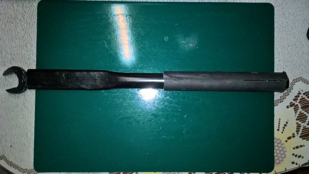 multijumper Opublikowano 15 Kwietnia 2024 Opublikowano 15 Kwietnia 2024 Przedłużka do kasety, dawcami w tym przypadku była stara dziewiętnastka płaska i rurka z grzejnika ręcznikowego. Mogę teraz używać dość znacznej siły nie męcząc się, klucz jest zaklepany a jako rękojeści użyłem samoprzylepnej taśmy termoizolacyjnej od klimy, długość 400mm. 1